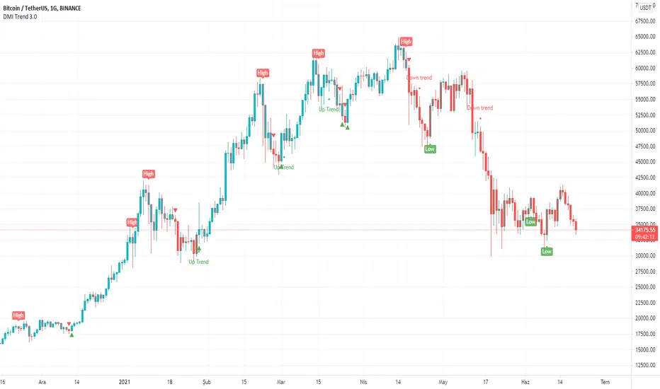 It also helps us to find the lowest and highest points of the graph according to the positions of Adx +DI and -DI .