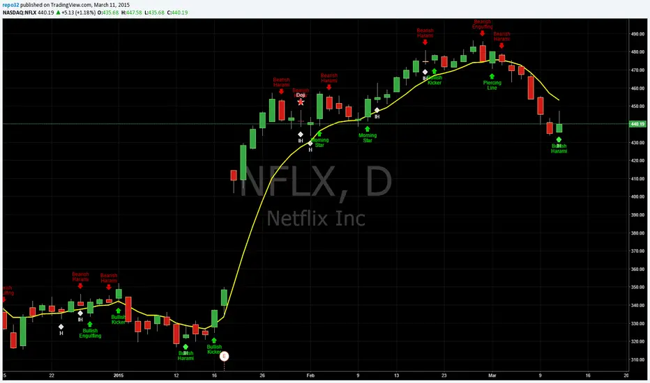 I have everything spelled out except the hammer and inverted hammer. They are "H" and "IH" respectively on the charts. They show up so often that they cluttered the charts.